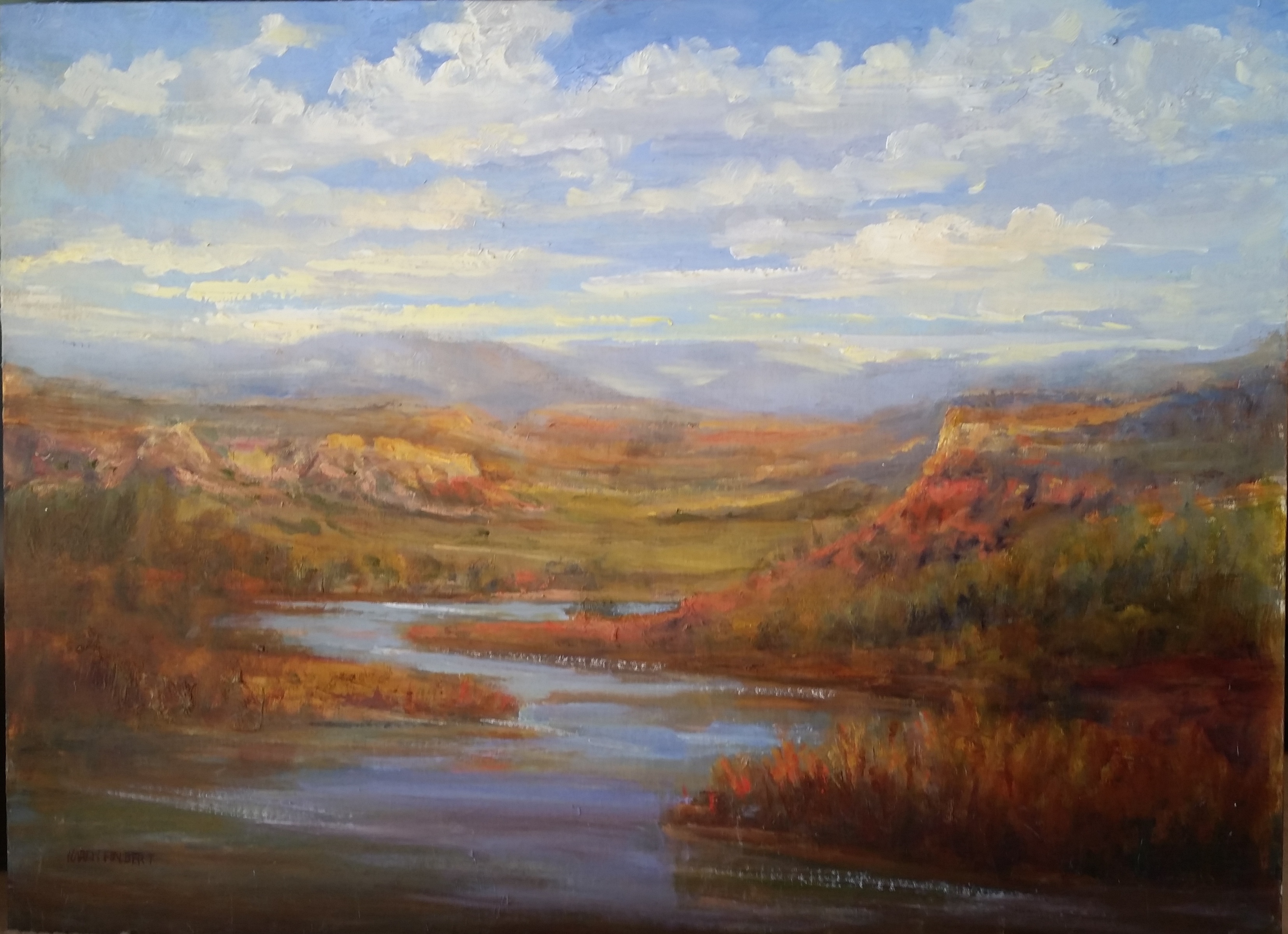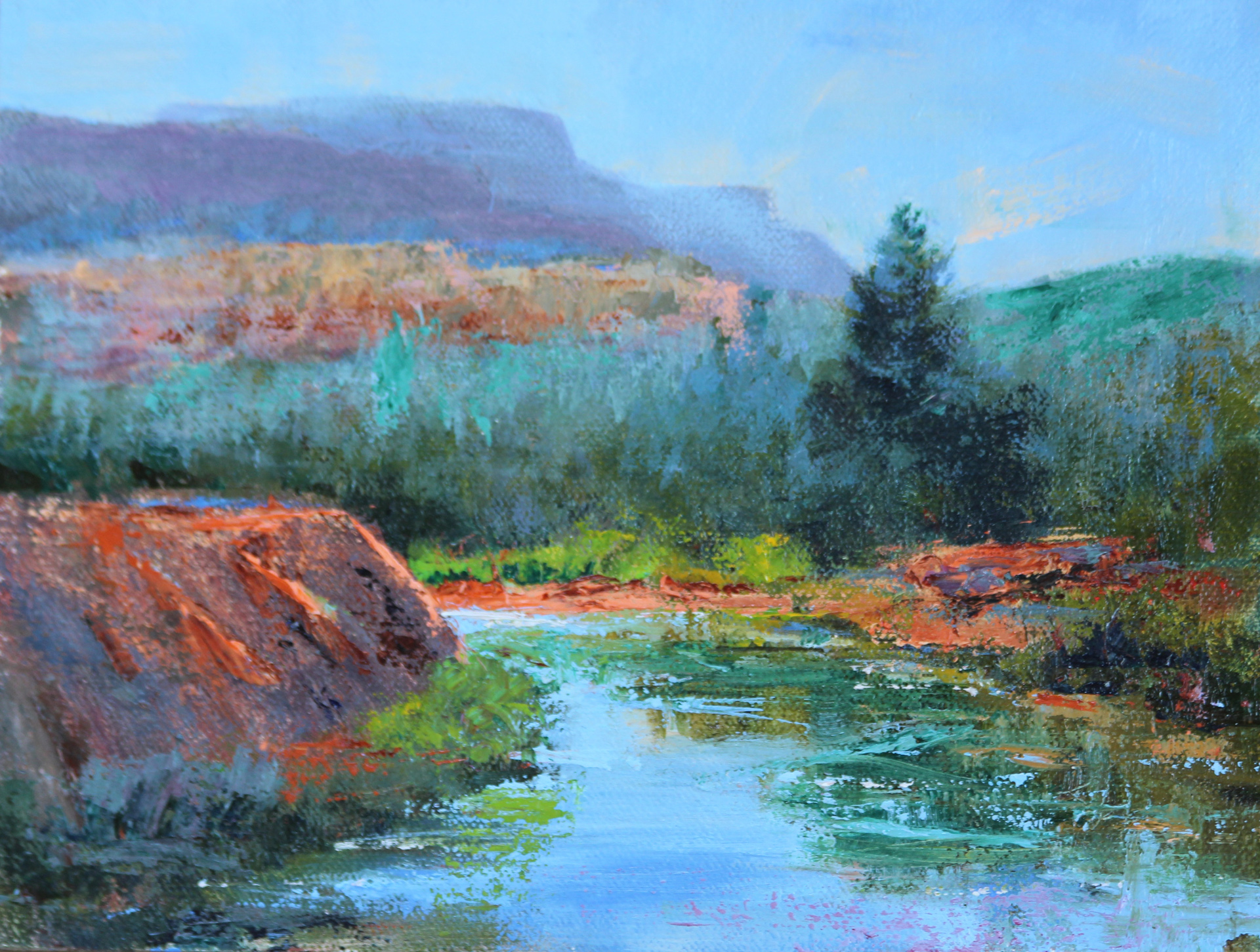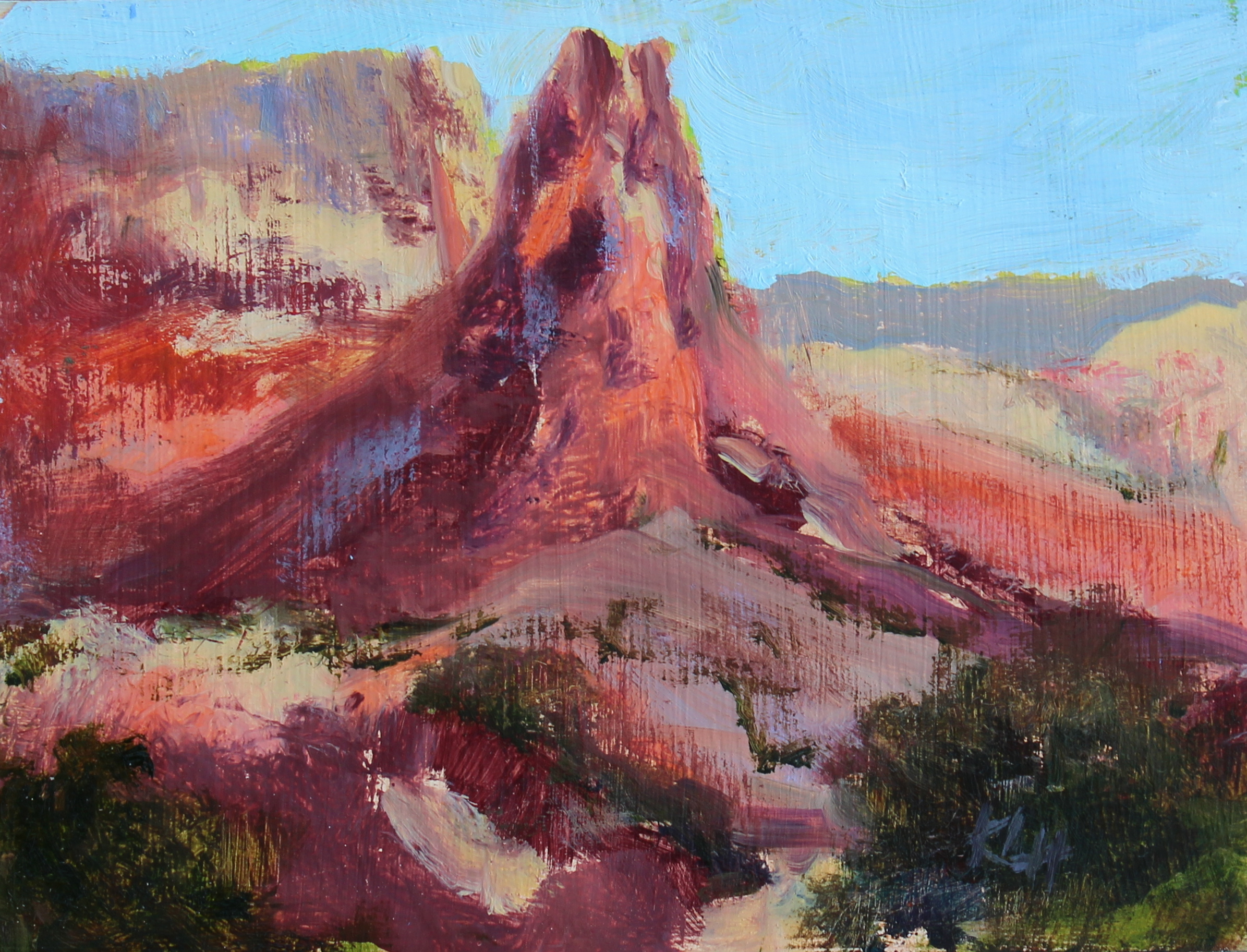 Sold Jun 20, 2020 by the Marigold Gallery in Santa Fe. Daily morning walk view. One of a series exploring the colors of the desert: Ocotillo, desert and mountains. Compare with other Ocotillo versions. Expanded palette (Cobra): Cadmium Yellow Light, Vermillion, Madder Lake, Ultramarine Blue, Phthalo Blue, and White plus: Cobalt BLue, Phthalo Green, Sap Green, Viridian, cadmium lemon, Cadmium Red Light and Medium, Opera (Holbein Duo), Blue Violet (dioxide purple), yellow ochre, burnt sienna. #paletteknife, #paptertowel, #radicalimpressionism, #santaritamountains.